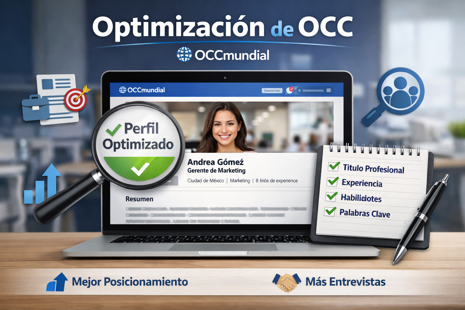 Optimización de OCC (OCCMundial) para que tu perfil se vea más profesional, aparezca mejor en búsquedas y aumente tus oportunidades de entrevista.